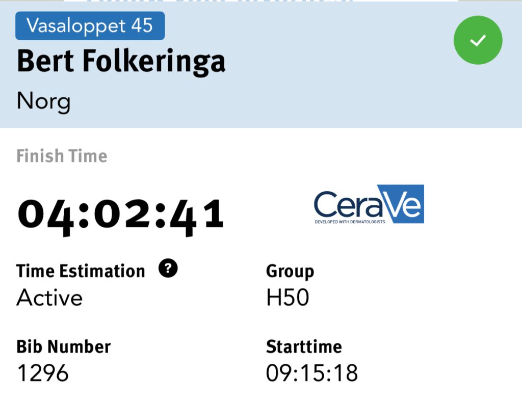 Langlaufend was de Vasaloppet goed te doen. Het parcours lag er mooi bij en het was niet heel druk. De loipes waren vrijwel overal goed gespoord en ik ging heel makkelijk vooruit. Het was ijzig en daardoor heb ik snel kunnen langlaufen. 45 km in 4 uur. Blij met dit resultaat!!!