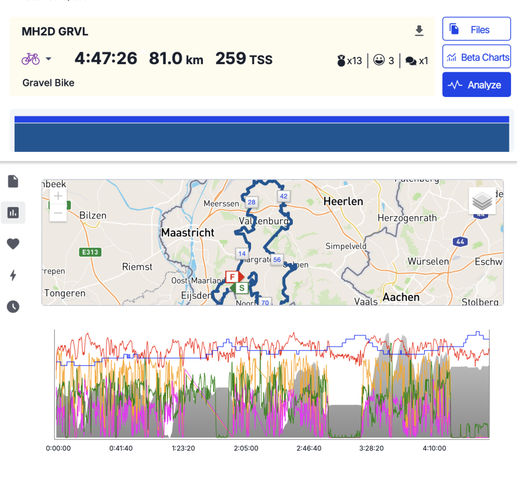 In het weekend van 19-21 september heb ik op de gravelbike de MH2D gereden. Een route van 80 kilometer langs heel veel gravelpaden. Schitterend om Zuid-Limburg op een andere manier te verkennen, want sinds 2000 rijd ik vrijwel jaarlijks deze MH2D op de racefiets. En dit jaar voor het eerst op de gravelbike. En wat een belevenis was dat!